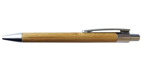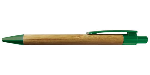Der Kugelschreiber wird aus Bambus mit Plastik Zubehören produziert. Das Produkt stammt teilweise aus einem recycelten Material und seine Herstellung bietet eine umweltfreundliche und grüne Lösung.
