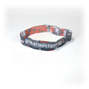 Die gewebten Stoffbänder bieten wir in zwei verschiedenen Breiten, entweder in 15 mm oder in 20 mm. Die Länge ist bei beiden Bändern 350 mm. Diese Festivalarmbänder können wir mit Neonfarben auch produzieren.
