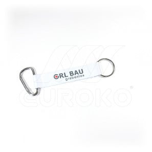 Die Stoff Schlüsselanhaenger small sind aus weichem Polyester. Sie werden in zwei verschiedenen Breiten mit einem Schlüsselring und mit einem ovalen Karabiner produziert. Sie sind ein idea...Auf Lager