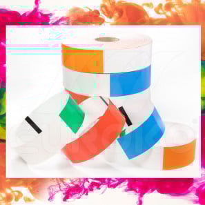 Die Thermo Eintrittsbänder können Sie selber mit einem Thermotransferdrucker bedrucken.