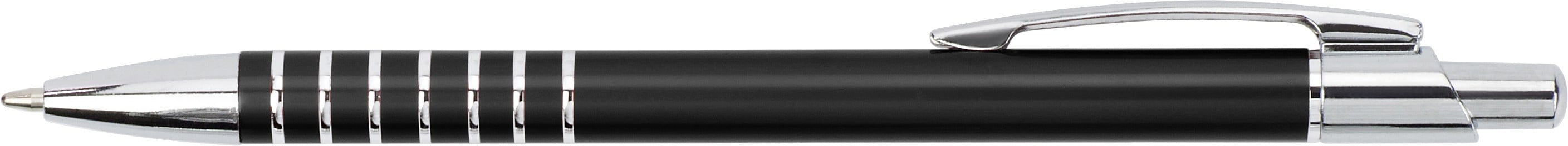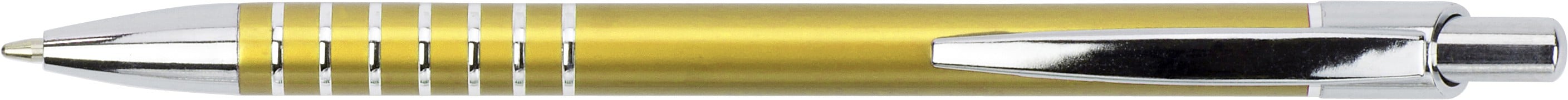 Der Kugelschreiber verfügt über einen Klipp, eine Spitze und einen Drücker aus Metall.